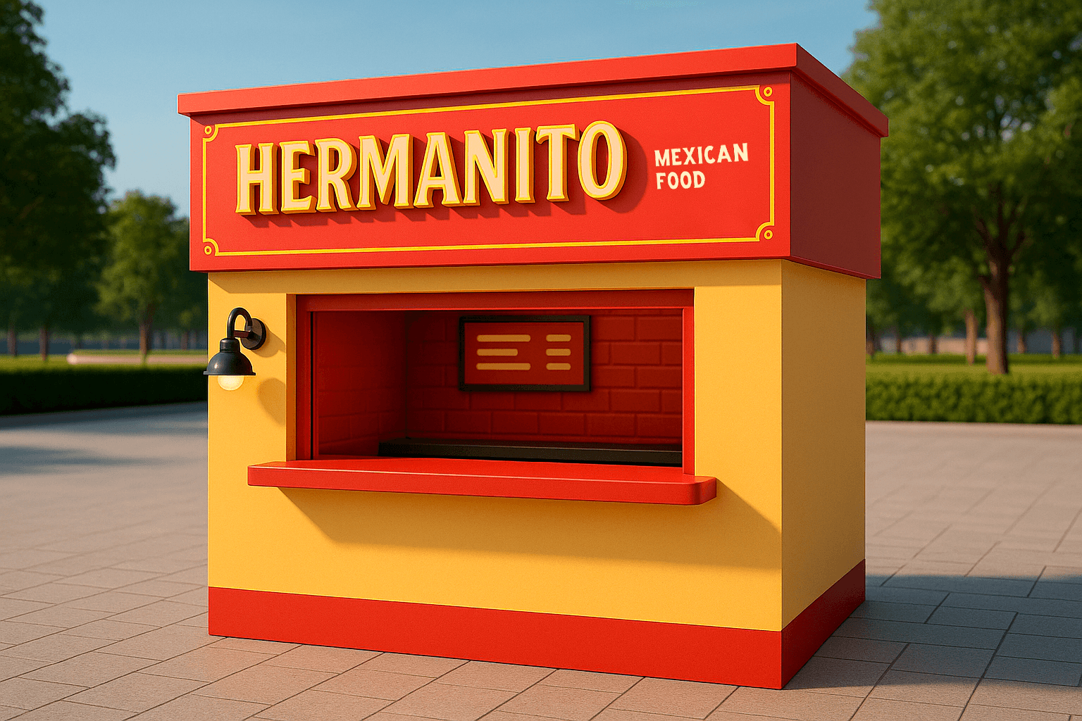 Estrutura compacta, com foco em take away e atendimento rápido, ideal para áreas menores e otimização de espaço.